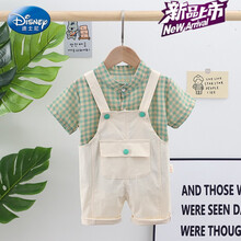 迪士尼旗舰官方店 新品男童夏装洋气2儿童衣服3婴儿短袖潮童装一周岁宝宝背带裤套装夏季 绿色 100cm