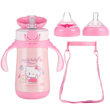 凯蒂猫(Hello Kitty)儿童保温奶瓶鸭嘴杯子 宝宝学饮杯儿童把手背带水杯316不锈钢奶嘴鸭嘴吸管三用保温杯