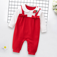 婴儿衣服新生儿连体衣宝宝长袖纯棉春秋装哈衣爬行服2020新款初生满月0男女6到12个月 红色(长袖草莓背带公主) 66cm(推荐身高62-68cm体重10-13斤)
