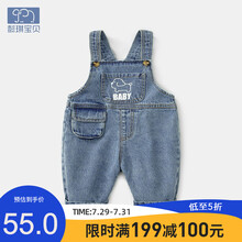 懿琪宝贝儿童背带裤春秋小童吊带裤春季婴儿长裤女宝宝春装洋气男童牛仔裤 牛仔蓝 110