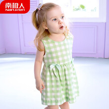 南极人 Nanjiren 女童连衣裙宝宝甜美小女孩裙子儿童淑女卡通可爱夏季衣服 森系背心裙-粉绿 90