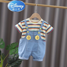 迪士尼男童夏装洋气儿童衣服夏季婴儿网红童装小孩一周岁宝宝背带裤套装 红色 80cm