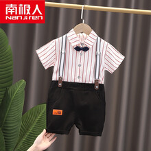 南极人旗舰官方店 高品质童装新品 男童夏装洋气背带裤套装宝宝帅气童装婴儿童夏季周岁生日礼服潮衣 红色 80cm