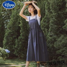 迪士尼&夏日潮搭专柜优品牌童装2-14岁小孩穿的女大童套装裙夏装胖女孩12过膝儿童背带两件套连衣裙长 白T+藏青色两件套 145cm(S码(75-90)斤仅供参考)