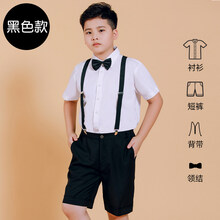 迪斯尼胖童礼服男童夏季短袖白衬衫黑短裤套装大童表演服儿童钢琴演出服 胖版 短袖白+短裤黑+背带+黑领结 160cm