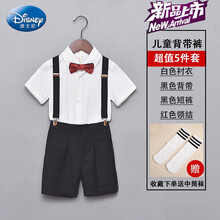 迪士尼新品男童礼服套装时尚男孩小主持人服装儿童背带裤演出服夏季帅气英伦小孩子夏天穿的西服 背带5件套 19码/150cm