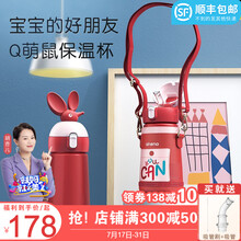 恩尼诺儿童保温杯316不锈钢带吸管婴儿保温水壶 小学幼儿园宝宝吸管杯便携带杯套背带 帕莎红350ml