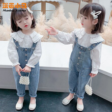 漫画小马童装女童套装春装儿童牛仔背带裤套装幼童小童1-7岁女宝宝休闲韩版洋气春季衬衫背带裤两件套 图片色 110码建议身高95-105cm