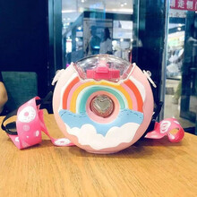 甜甜圈水壶 甜甜圈儿童吸管水杯防摔宝宝用网红背带 380ml吸管学饮水壶 380ML粉色彩虹 有背带