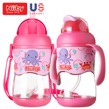 努比(Nuby) 儿童学饮杯 婴儿水杯 吸管杯 带手柄 背带宝宝水壶 防漏水杯带重力球 两用杯粉红色-400ml