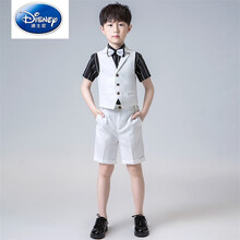 【特价捡漏】迪士尼(DISNEY)儿童打底裤夏薄男童短袖小西装套装夏季小主持人钢琴演出礼服六一儿童节 黑色三件套(马甲+短裤+衬衣) 送领结背带 120cm