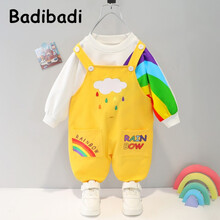 巴拉巴拉旗下badibadi 婴儿童装男童夏季帅气背带裤短袖两件套装宝宝短裤子小童男孩夏装 黄色 90