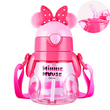 迪士尼(Disney)宝宝学饮杯吸管杯 儿童水杯子防漏背带水壶 WD-85粉色米妮440ML