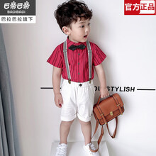 巴拉巴拉旗下Badibadi 男童礼服夏一周岁宝宝生日花童红色短袖衬衫儿童英伦风背带裤套装 红衣+白裤 送领结背带 80cm