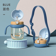 富光FGA婴儿学饮杯 儿童水杯带手柄背带家用防摔带重力球PPSU饮水杯 可水煮奶瓶鸭嘴吸管杯 蓝色 350ml