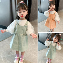 1-2-3-4五岁半女童春秋装背带裙套装2021春季新款网红女宝宝套裙婴儿童洋气三周岁小童长袖公主裙 绿色 120cm