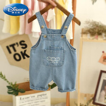 ℘Disney/迪士尼 儿童牛仔背带短裤夏季薄款小童中裤男童女童休闲裤宽松宝宝背带裤 三表情背带短裤 100 cm