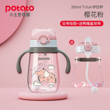 小土豆 potato 卡通熊tritan水杯大容量水壶防摔宝宝喝水吸管式水杯婴儿水杯鸭嘴吸管杯 樱花粉(300ML)+背带+鸭嘴盖