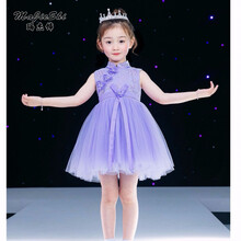 玛杰饰(MAJIESHI)六一儿童演出服幼儿园女童舞蹈蓬蓬裙小学生男背带裤合唱表演服装 紫色女 110