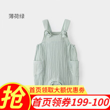 威尔贝鲁WELLBER宝宝背带裤子婴儿裤子夏季纯棉男童女童背带短裤儿童裤子 薄荷绿 100