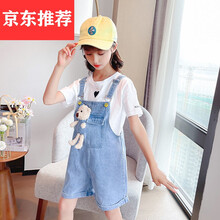 凯飞扬仙美搭配女童夏连衣裤背带裤套装新款夏装儿童韩版潮衣牛仔吊带裤短裤 牛仔蓝背带裤 160 【建议身高155左右】