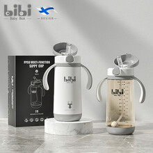 芬兰bibiBabyBox婴儿保温杯带吸管两用喝奶水杯奶瓶大宝宝学饮外出不锈钢带刻度外出便携幼儿园 350ml保温杯+380ml吸管杯(北欧灰)带背带
