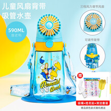 迪士尼儿童吸管杯幼儿园喝水杯带电风扇可调节小学生夏季水壶可爱 【风扇款+tritan+背带】蓝色唐老鸭