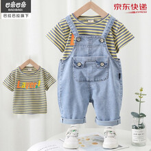 巴拉巴拉旗下Badibadi 宝宝牛仔背带裤套装短袖夏季小童连体裤薄款男童吊带裤婴儿童装 黄色 120