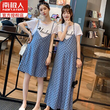ℂ℘南极人品牌孕妇装孕妇背带裤夏装2021新品孕妇洋气款中长款夏天上衣潮妈孕妇连衣裙夏季两件套装抖音 白色上衣+长裤套装 M