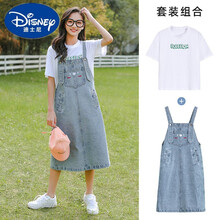 迪士尼儿童连衣裙同款女童纯棉中长款绣花夏季韩版宽松连衣裙女大童休闲牛仔背带裙小公主装的 21512白色T恤+牛仔蓝背带裤套装 155cm(155/M)