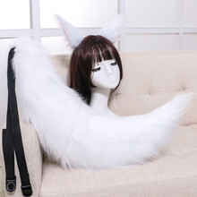 抖音同款动漫cosplay加长毛加大九尾狐狸耳朵尾巴套装狐仙大人狐妖抖音萌 白耳朵+尾巴 均码