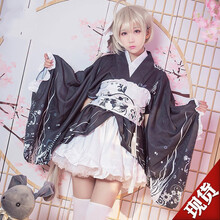 【FKASSC制服馆】缘之空春春日野穹cos穹妹黑色和服浴衣cosplay服装女 全套 衣服+Y带+腰绳+腰上蝴蝶结+假内领+白色打 XL