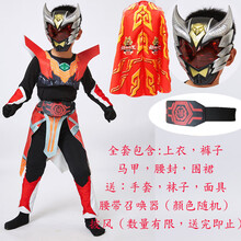 铠甲勇士皮套 铠甲勇士套装衣服童装男万圣节服装猎凯cosplay卡通动漫演出服 红色(全套) 110