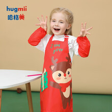 hugmii哈格美儿童绘画衣罩衣围裙美术画画穿的衣服防水防脏宝宝反穿衣 红色麋鹿 参考身高110-140cm