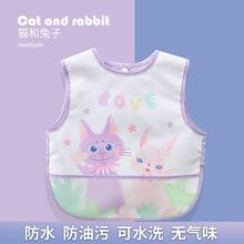 南极人宝宝罩衣无袖薄款吃饭围裙防水四季婴儿童围兜饭兜女孩男童反穿衣一件装 紫色猫咪小兔 110
