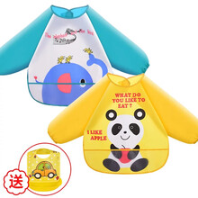 【2件装】宝宝吃饭罩衣婴儿围兜儿童防水画画反穿衣免洗儿童喂饭兜长袖衣服小孩餐衣1-4岁 蓝色大象+黄色熊猫