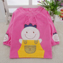 新款宝宝罩衣纯棉灯芯绒面料!前面加大防水层。特点:好洗,好干。可当饭衣,罩衣及口水衣。
