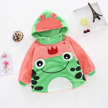 婴儿加棉衣服男女宝宝夹棉罩衣加厚防水防脏婴幼儿童反穿衣防污画画衣水晶绒倒褂天鹅绒外出服新品外套秋冬季 青蛙红色 80码 建议身高 73-80cm