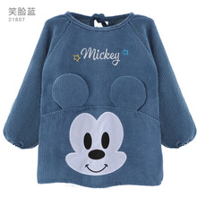 迪士尼儿童罩衣防水吃饭围兜画画衣围裙长袖罩衫宝宝幼儿园反穿衣 笑脸蓝米奇 大码/建议适合身高105-115cm【冬天衣服厚