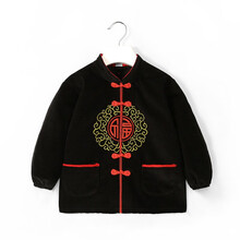 优贝祥 儿童反穿衣灯芯绒春秋冬新款拜年汉服吃饭防水防脏男宝宝唐装罩衣 唐装黑色福字 80【0-1岁】