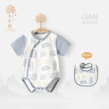 木生棉中国风夏季宝宝连体衣婴儿三角哈衣包屁衣新生儿纯棉衣服潮 笔墨横姿 80cm