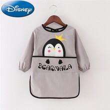 迪士尼高档捡漏小孩子的宝宝吃饭反穿衣儿童围裙长袖防水防污绘画罩衣衣服男女童画画护衣 长袖画衣企鹅灰色 90(90码 建议 2-3岁)