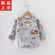 ℂ℘迪士尼【呵护宝宝】宝宝罩衣春款棉儿童罩衣长袖反穿衣防水防脏透气婴儿吃饭围兜 CM灰色挖掘机(绑带款) 90(90(建议身高70-80厘米))