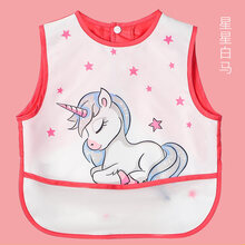 迪士尼同款儿童围裙吃饭围兜宝宝吃饭罩衣男女防水防脏夏季薄款儿童围裙无袖婴儿围兜饭反穿衣 星星白马 90(90(建议0-2岁))