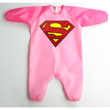 宝宝吃饭罩衣防水连体衣婴儿爬爬服儿童画画全身防脏爬行反穿护衣 粉红色 跑男 XS(1-2岁65-85身高)
