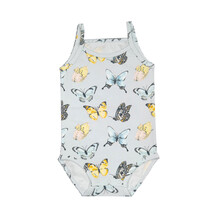Milkbarn2021夏季新品婴儿宝宝吊带连体服有机棉印花哈衣包屁衣 蝴蝶翩翩 90cm