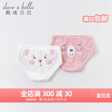 戴维贝拉童装儿童内裤女童三角内裤男童宝宝短裤davebella新款小孩婴儿小内裤【两件装】 粉白色组【女童】 110cm(建议身高100-110cm)