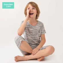 久岁伴儿童家居服薄款莫代尔短袖套装男童睡衣透气中大童宝宝空调服 110881 花灰-短袖 150cm