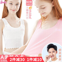 芭比女童内衣发育期9-12岁儿童无痕小背心女孩吊带抹胸宝宝内穿打底衫 2件装【樱花粉夹棉胸垫+白色可拆卸胸垫】 160 适合155-165cm【60支兰精莫代尔】