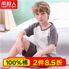 南极人儿童睡衣男夏季纯棉男童睡衣短袖套装宝宝半袖可外穿中大童居家舒适家居服 NX21201XSH 140